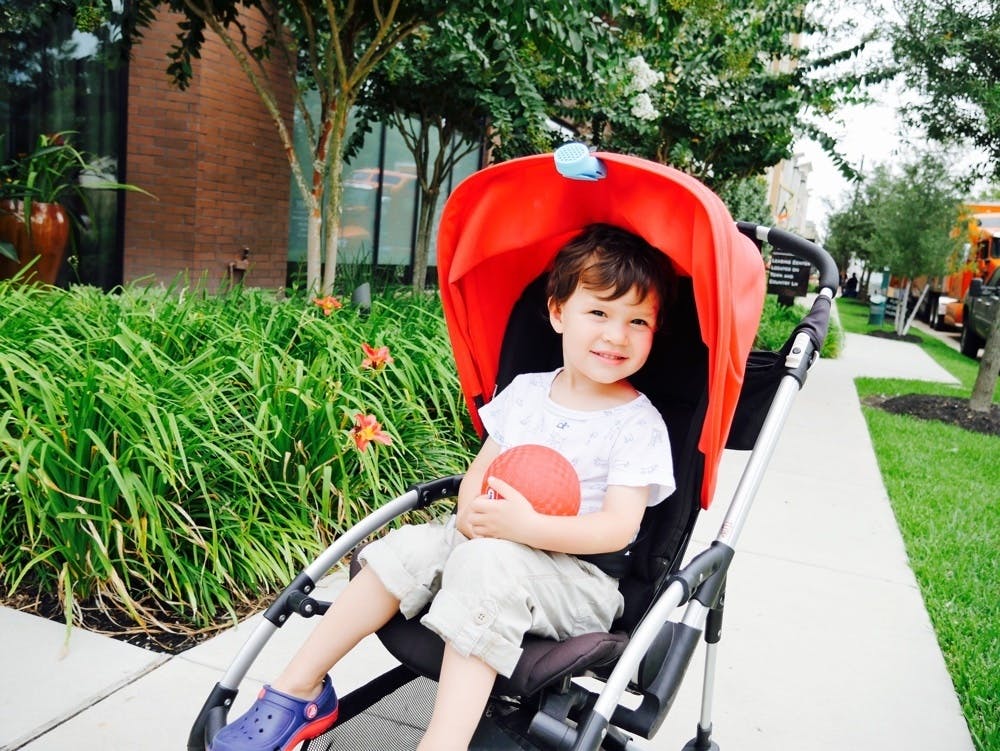 blöをベビーカーのひさしにつけて赤ちゃんのお散歩も涼しく。