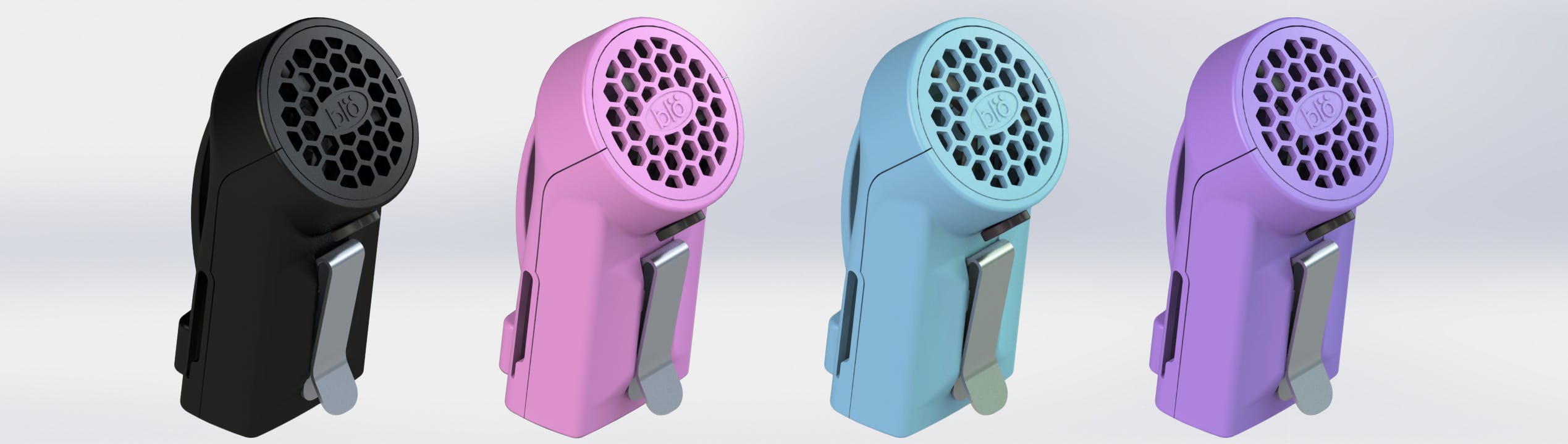 左からブラック、ピンク、スカイブルー、パープル