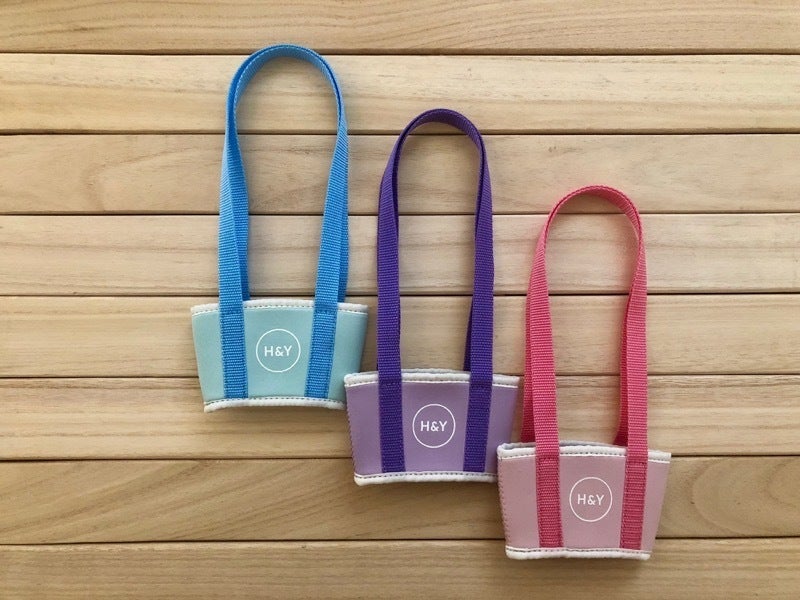 また、底がないことで大きさが違っても、ほとんどのカップに対応(※1)できるようになっています。持ち手の長さは「持ち歩く」「飲む」ということを考え、 試行錯誤の末に絶妙なバランスの長さを編み出しました。(※1) 極端に大きな カップや小さなカップ、細いカップなど、対応できない種類もございます。