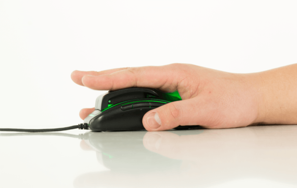 指の付け根から指全体でクリックすると、上腕二頭筋や胸筋といった、内側の筋肉群だけが使われます。従来のマウスのように、手の甲から始まる外側の筋肉群を使うことはありません。
