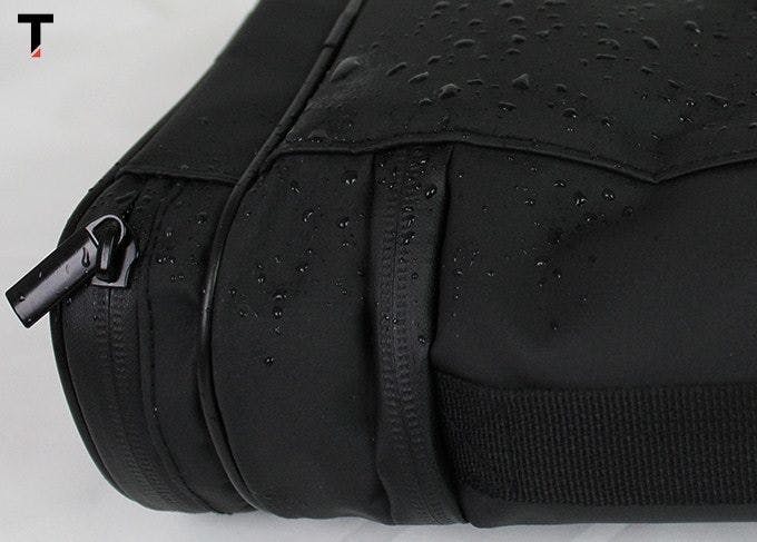 生地は蜂巣織りが施された高品質のリップストップナイロン。防水ジッパーを採用しています。