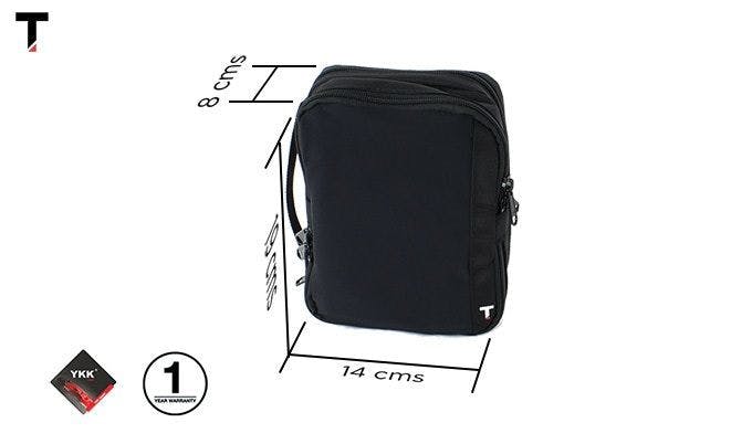 Lサイズは14.25”X10.1”X4”(約36.2cm X 約25.7cm X 約10.2cm)で、フルサイズのスーツケースにフィットします。