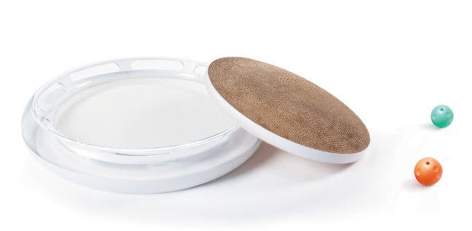 直径330mmのスクラッチャーには耐久性のある高密度の厚い段ボールを採用しているため、猫ちゃんの爪とぎ欲求に最大限に応えてくれます。またこの部分は猫ちゃんたちが収まるのにちょうどよい大きさの為、休息場所になることができます。