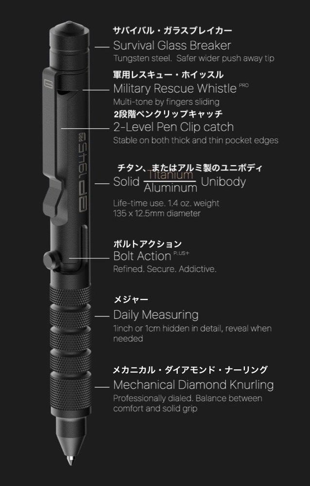 世界初のチタン製/アルミ製ボルトアクションペン。ユニボディ設計、タングステンのガラスブレイカー、軍用レスキューホイッスル、ボルトアクション機構など、究極のサバイバル機能を詰め込んだ「世界で最もタフなペン」です。