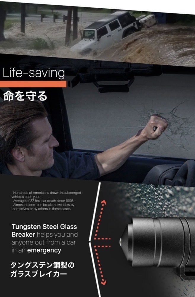 ペンの末端に、超コンパクトなタングステン鋼ガラスブレイカーを搭載。