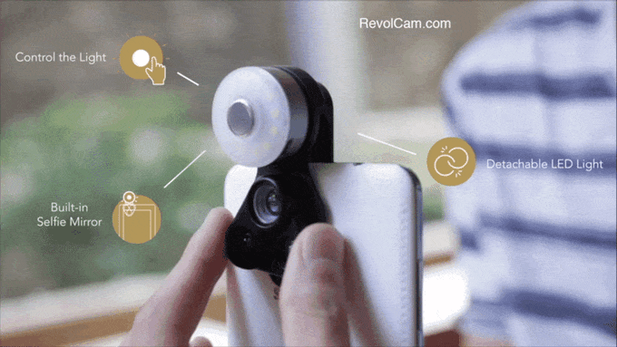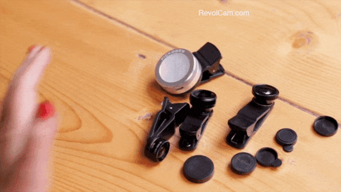 RevolCam™は、3種類のレンズを回転式に切り替えて使えるスマートフォン用レンズアタッチメントです。使えるレンズは、広角レンズ、魚眼レンズ、マクロレンズの3つ。