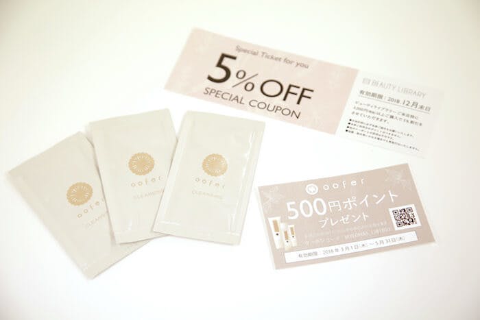 - クーポン2種(オーフェルwebチケット+ビューティーライブラリー 次回購入時 5%offクーポン※)