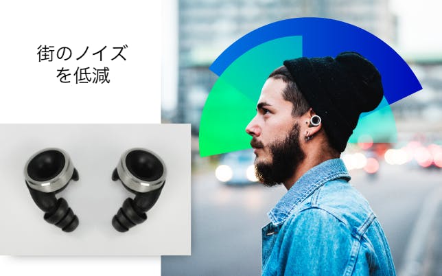 聞こえてくる環境音を自由に調節できるとしたらどうでしょう? 車の音や街のノイズにイライラすることがなくなります。コンサートの爆音で耳がおかしくなることもないし、騒がしいカフェでも、仕事に集中できます。聞きたい音を聞きたい時だけ聞けるのです。