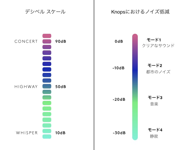 Knopsを使えば、環境音のボリュームを、音楽を聴く時のように自由に調節することができます。
