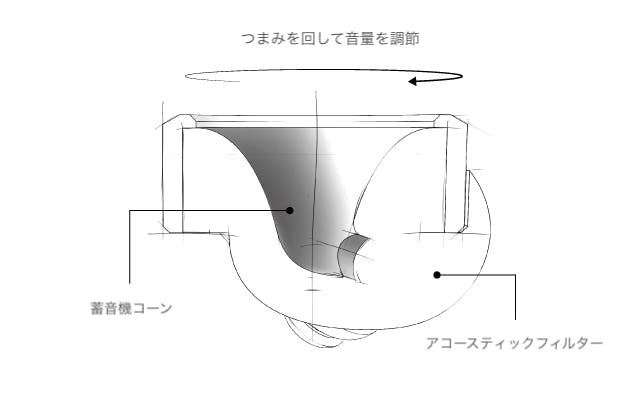 それを実現するのが「Knops(ノップス)」です。言うなれば、耳につける音量コントローラー。つまみを回せば、耳に入ってくる音のボリュームを自由にコントロールすることができます。