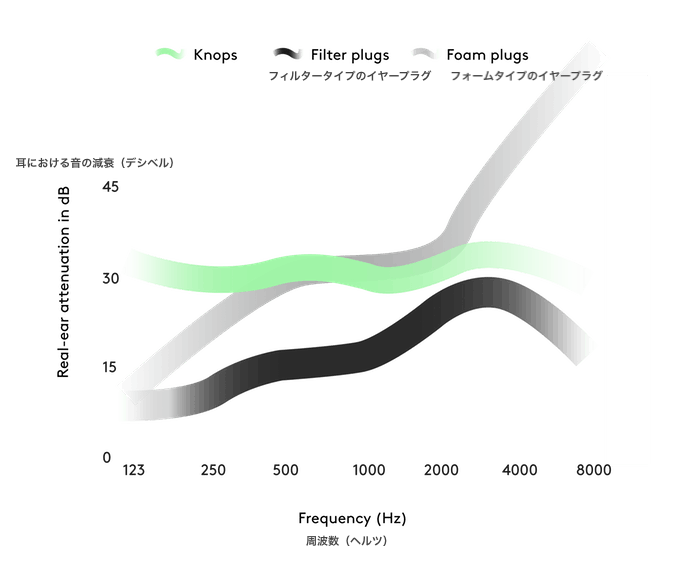 Knopsが電気を使わない理由は音に対するこだわりでもあります。Knopsを通して音を聞いても、音が電気的に処理されるわけではないので、ナチュラルなサウンドが楽しめます。それでいて、鼓膜を傷つけるような有害な音はシャットアウトできるのです。