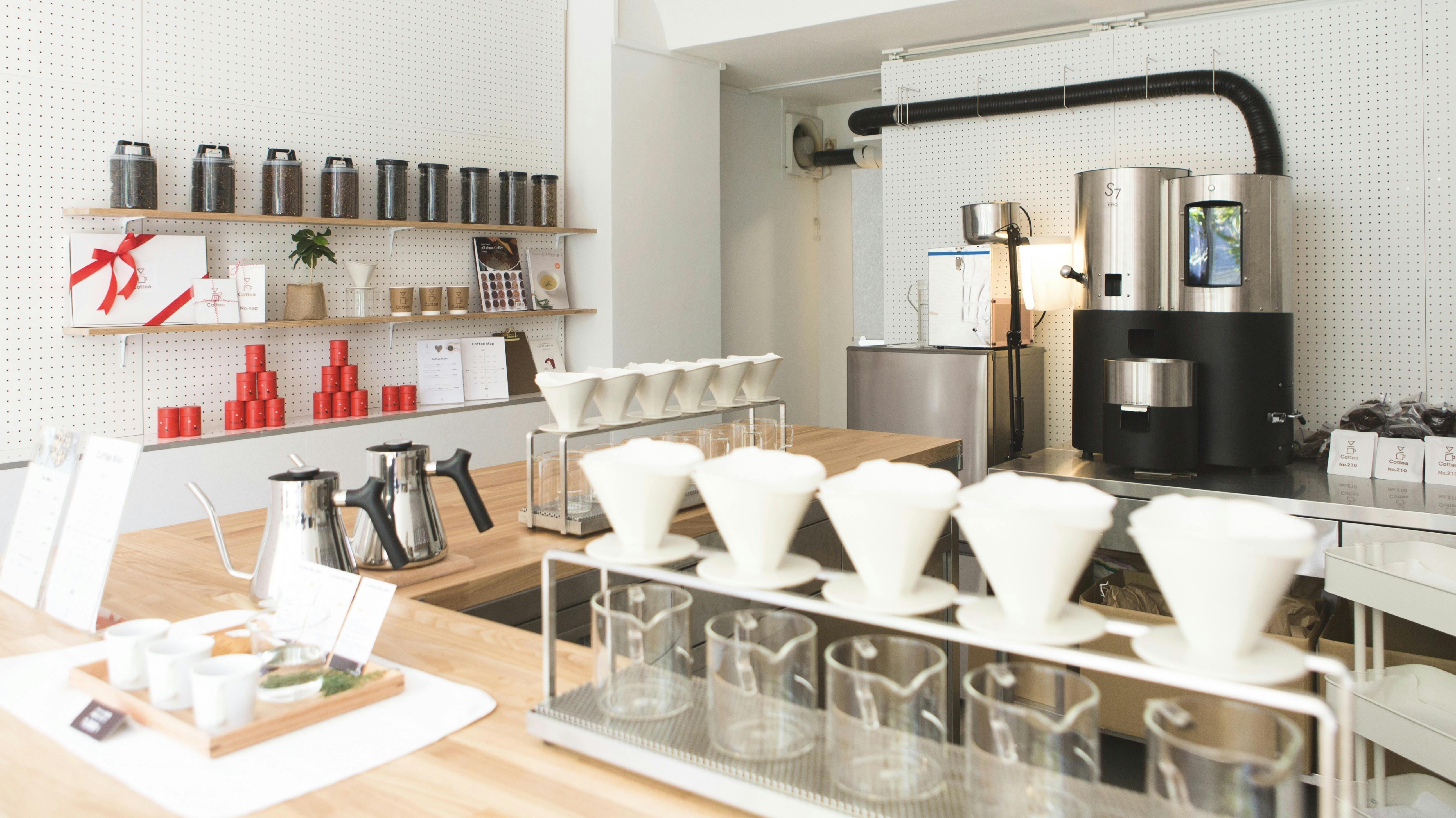Cotteaは、東京、表参道にあるコーヒー試飲専門店です。お客様の嗜好をヒアリングしながら試飲のご提案をさせていただくユニークなショップです。日本に1台しかない焙煎機を使っています。