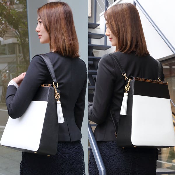 というキャリア女性のお客様からのご意見をきっかけに、これまでに無かった、リュックにもなるエレガントなビジネスバッグをプロデュースしました。