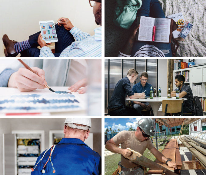 オフィスワーク / 勉強 / クリエイティブワーク / ミーティングといった文系仕事だけでなく、身体を使って行う仕事にも機能を発揮します。