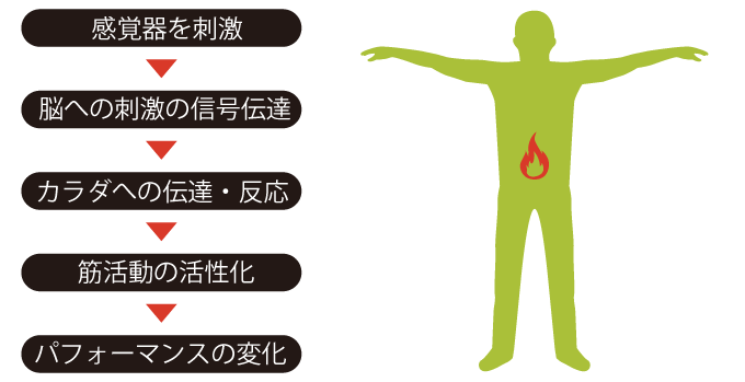 人間は感覚器(視覚や聴覚など)にちょっとした入力(音を聞く、皮膚に刺激がある、飲食をする、光を見る)だけで一時的に心拍数が上がり身体能力が向上します。逆に深呼吸など、心拍を安定させる行為によってパフォーマンスがダウンします。