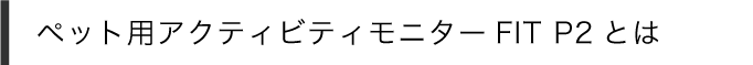 「FIT P2」はペット先進国のアメリカで生まれた犬猫向けウェアラブルデバイスです。スマートフォンアプリと連動し、高精度な加速度センサによって睡眠やランニング、ウォーキングなどのペットの活動情報を収集することができる製品です。