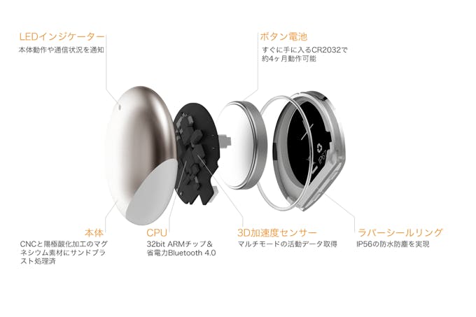 コインサイズのボディには必要なセンサーがぎっしり詰まっていますが、元気なペットの活動にも耐えられる強靱性と、悪天候でも問題ないIP65クラスの防水防塵性能を誇ります。