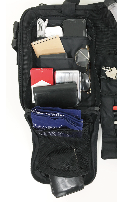 また、メッシュ部分は上下2ヶ所にジップがついていて、財布やハンカチ、タバコなどすぐ取り出したい物を入れるのに最適です。