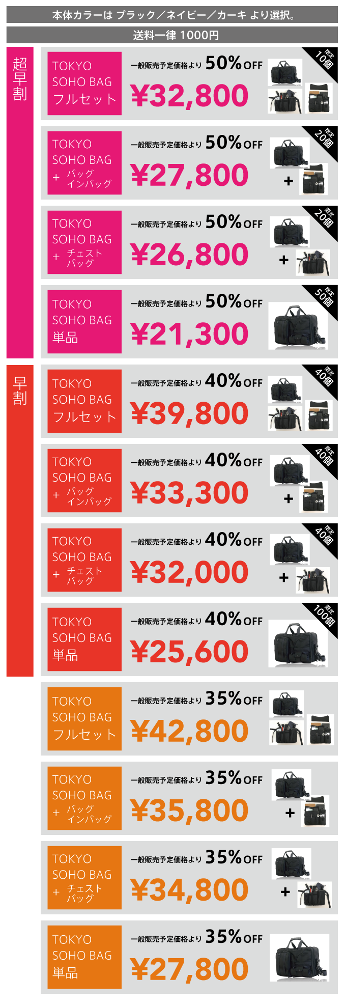 ※ 有料オプションのバッグカラーは全てブラックとなります