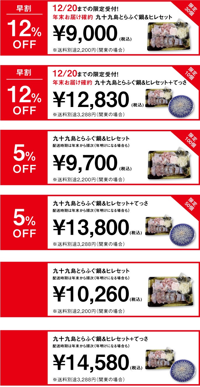 | 区 域 | 鍋セット | 鍋、てっさセット |