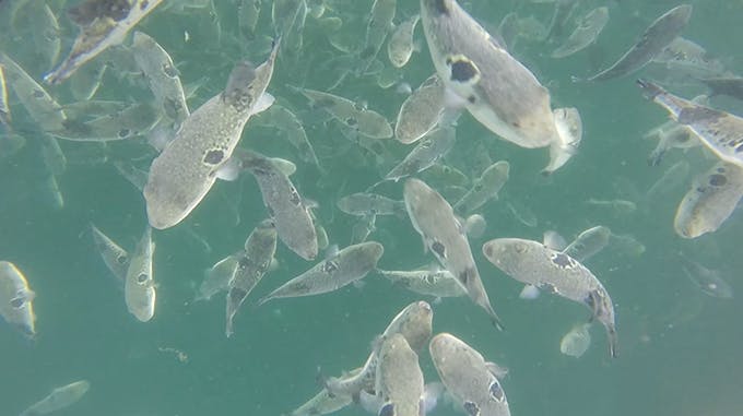 長崎県佐世保市にある九十九島。佐世保港の外側から北へ25kmにわたり島々が点在する海域のことで、島の密度は日本一といわれています。九十九(くじゅうく)とは数がたくさんあるという意味で使われる例え言葉で、実際の島の数は208あります。リアス式海岸で潮変りがよく日本中探しても、これほど養殖に適した産地は少ないかと考えられます。太陽と海と島の恵みが、最高の九十九島とらふぐを育んでくれます。また2014年の統計では長崎県の養殖とらふぐ生産量が全国1位になった実績もあります。