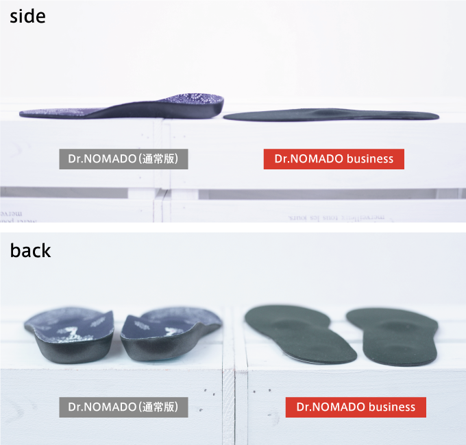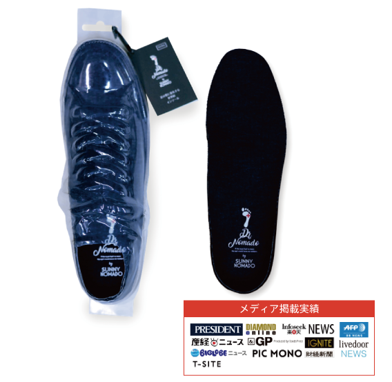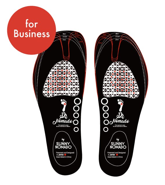 今回お届けするのは、ユーザーの声を元に新しく開発した、ビジネスユースのインソールDr.NOMADO business」です。従来の「Dr.NOMADO」の機能はそのままに、革靴や仕事用シューズ、足袋にもフィットする薄さと軽さを実現しました。