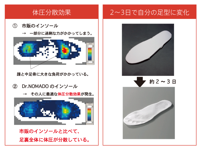 Dr.NOMADOは、「自分の足型になる抗菌防臭インソール」です。