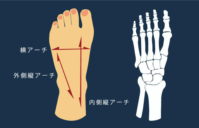 Dr.NOMADOは横アーチと内側縦アーチをサポートし、ケガを防止します。