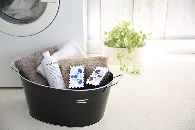 1日で何度も洗濯機を回すプロの現場ではスポンジのお手入れは短い時間で済ませたいもの。そこで、今回のフリーランドリーPROは毛やホコリが一面に付着し、取り除くことができなくなった場合は1枚一番外側をめくり、新しい面を表面に出すことでまた新しくお使い始めることができます。