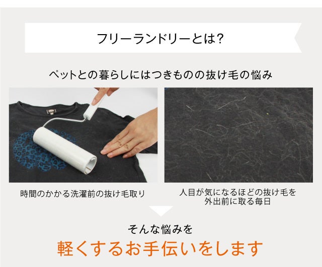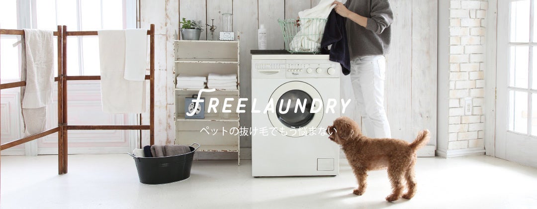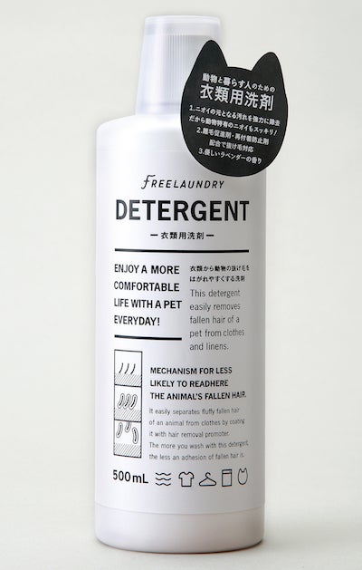 衣類から抜け毛をはがしやすくし洗うほど衣類に抜け毛がつきにくくしてくれる洗剤「フリーランドリーディタージェント」とのセット。