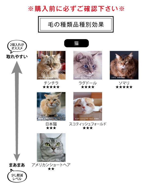 毛の特徴、抜け毛の多さによってスポンジを入れる個数、組み合わせを変えていただけると集毛率はアップします。
