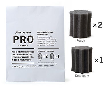 フリーランドリーは洗濯機の中に入れるだけで、動物の抜け毛を絡め取ってくれる専用のランドリースポンジです。