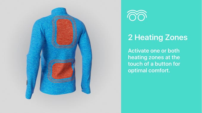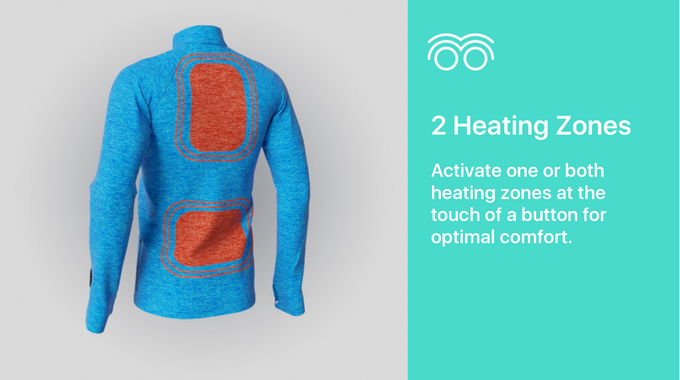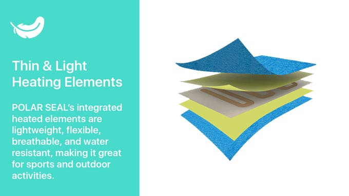 ヒーターは極薄の放熱層2枚で包まれ、生地と完全に一体化しています。軽量かつ柔軟、通気性、耐水性にも優れ、スポーツやアウトドアに最適です。