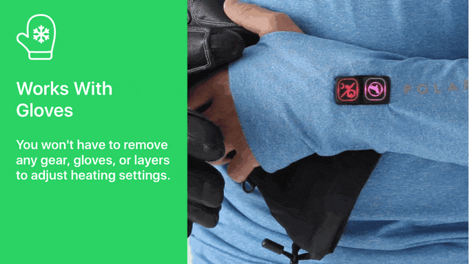 コントロールボタンは手袋を着けたままでも操作が可能。スキー場のリフトやゲレンデなど、どこにいても手袋を脱がずに気軽に温度を調節することができます。