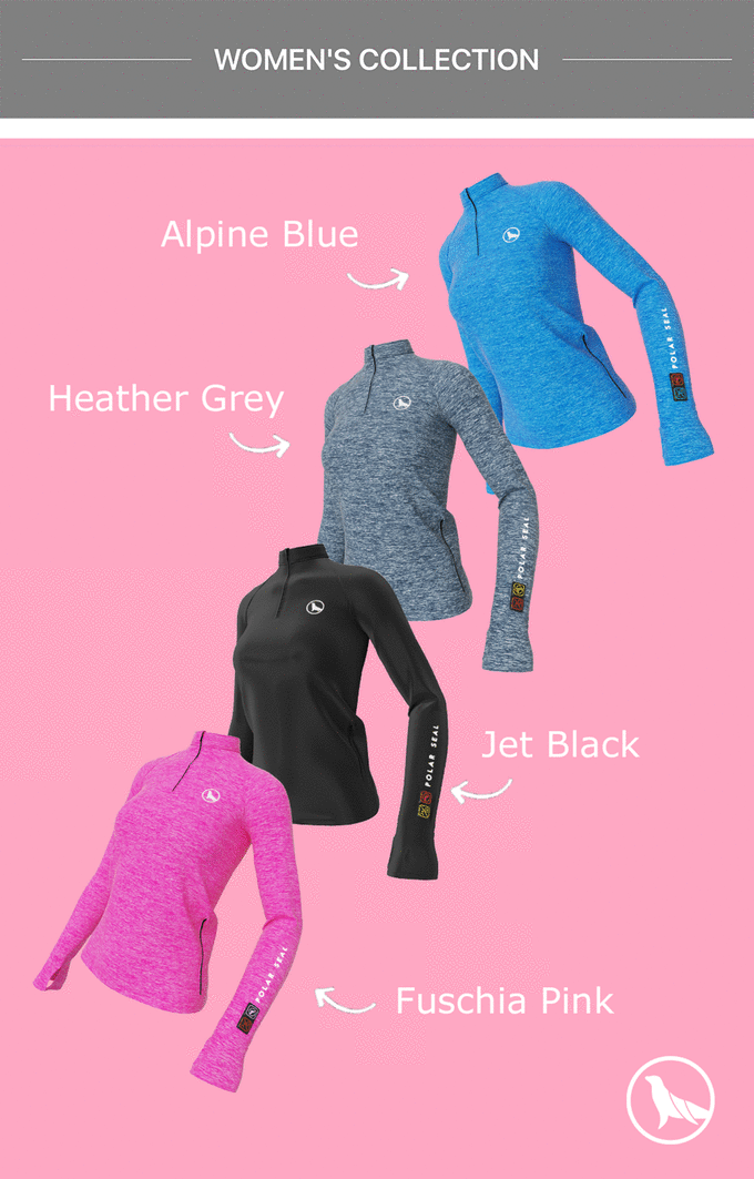 女性用は、アルペンブルー、ヘザーグレー、ジェットブラック、フーシャピンクの4色です。