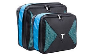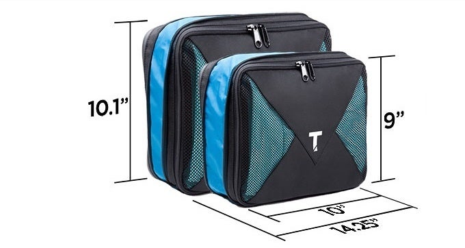 Lサイズは14.25”X10.1”X4”(約36.2cm X 約25.7cm X 約10.2cm)で、フルサイズのスーツケースにフィットします。
