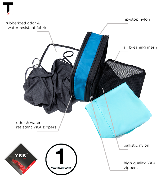 また、防水仕様のYKKジッパー。まさに最高の品質、最高の耐久性を持つパッキングケースです。品質には自信がありますので、1年間の無条件保証を提供します。万が一、1年以内にKompakが破損した場合は、無料で交換させていただきます。送料だけご負担ください。