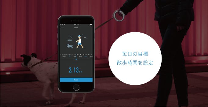 スマホと「GO」をBluetoothで接続することで、毎日の散歩時間が自動的に計測されます。散歩時間は日ごとに記録されるので、「この日は何分散歩したか」をあとで確認することができます。