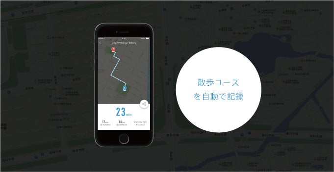 散歩したルートは自動でスマホに送信されます。犬と過ごした貴重な記録として、専用アプリにログをためていく楽しさもあります。