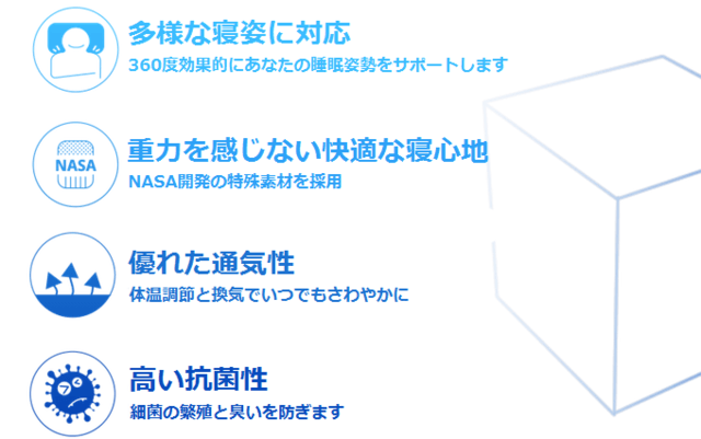 快適な睡眠のためには枕の構造と同時にその素材も重要です。The CubesはNASAが宇宙飛行士のために開発したメモリーフォームを使っています。