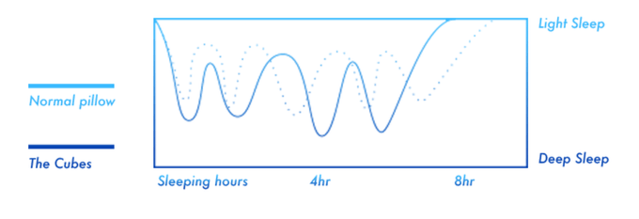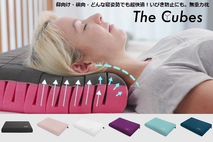 The Cubesは70個のキューブを両側から支えるという構造をしており、どんな姿勢でも頭にフィットし、どこにも負担のかからない寝姿勢を保ってくれます。質の高い睡眠をサポートし、いびきの改善にも効果的です。