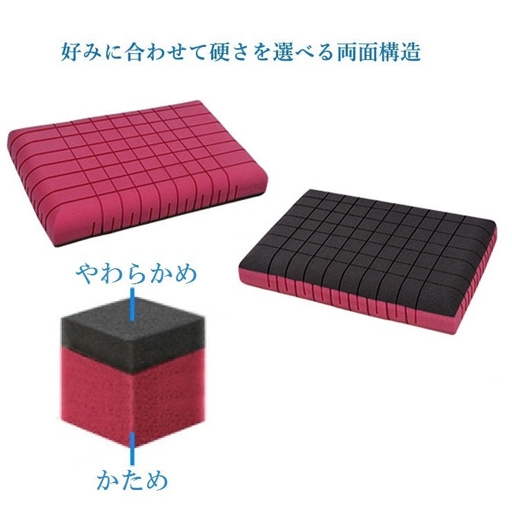 The Cubesは両面が使えるタイプの枕です。柔らかい枕が好きな人はピンクの面を、硬めの枕が好きな人はグレーの面を使えば、自分にあった快適な寝心地を追求できます。