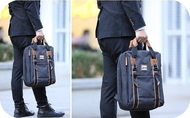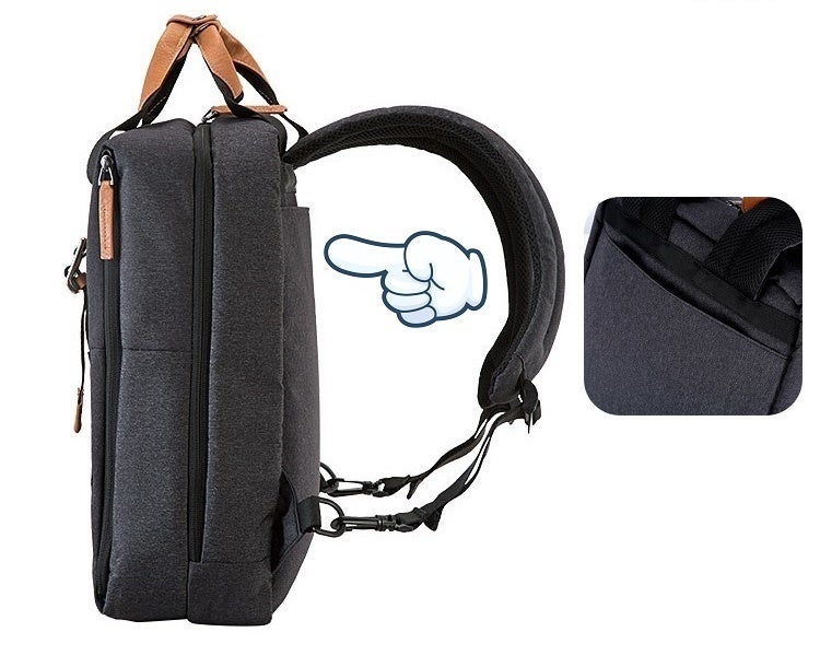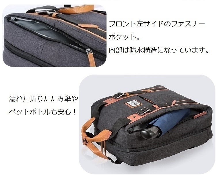 バックパックからブリーフバッグ(手さげ鞄)にチェンジする場合はショルダーをアジャスターから外し、背面のポケットに収納させてセット完了です!
