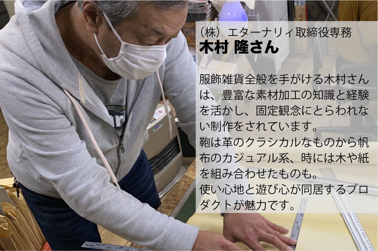 現在、日本の鞄職人界は高齢化問題を抱えています。10年後のメイド・イン・ジャパンが危ないと言われる中、エターナリィさんには貴重な次世代を担うホープのひとり、若い女性鞄職人・大野さんがいらっしゃいます。このプロジェクトを担当いただきフレッシュな感性が製品に加わりました。