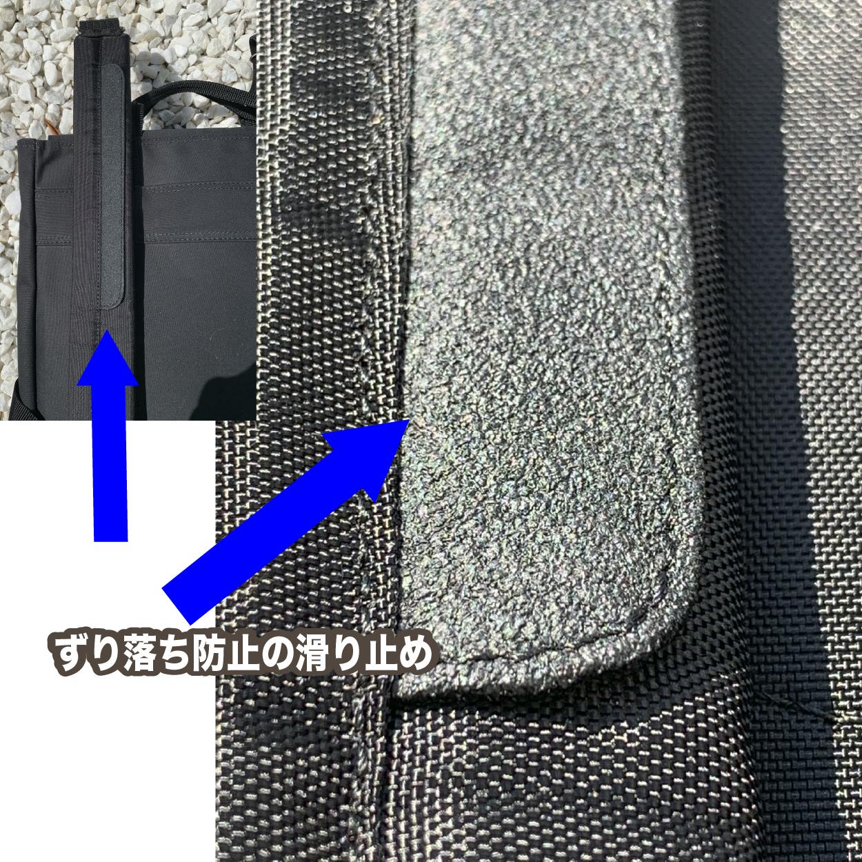 ショルダーベルトの裏、首側サイドに滑り止めをつけました。