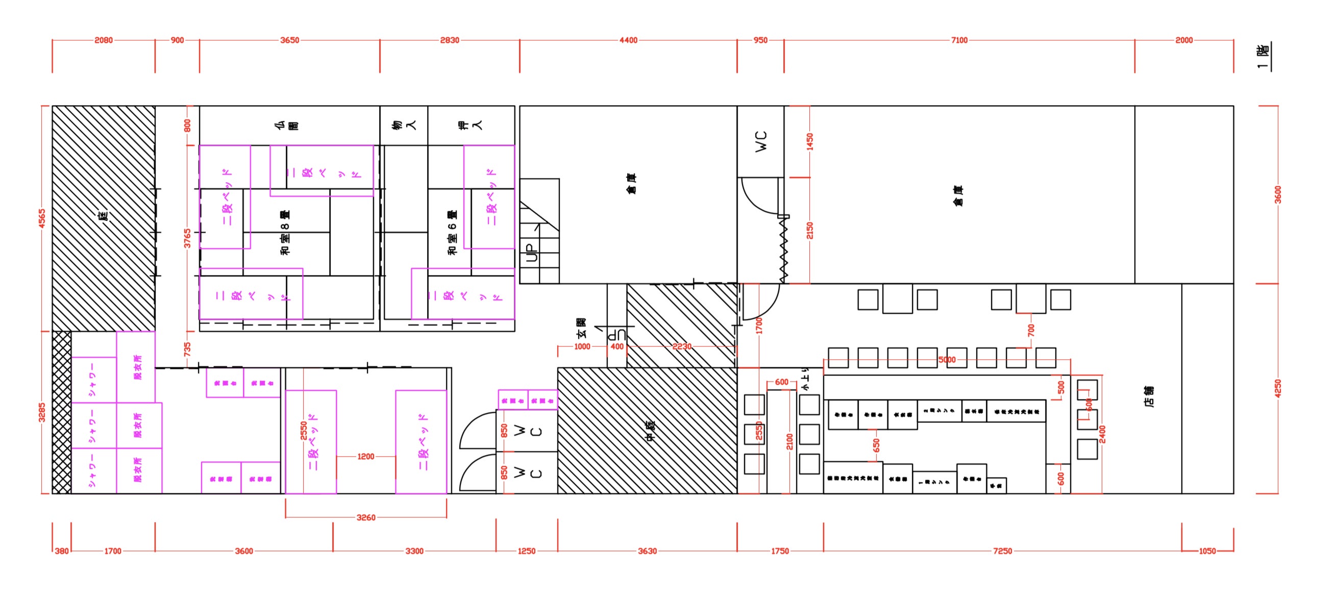 宿は一階がお客様のスペースで、カウンターバーを併設します。