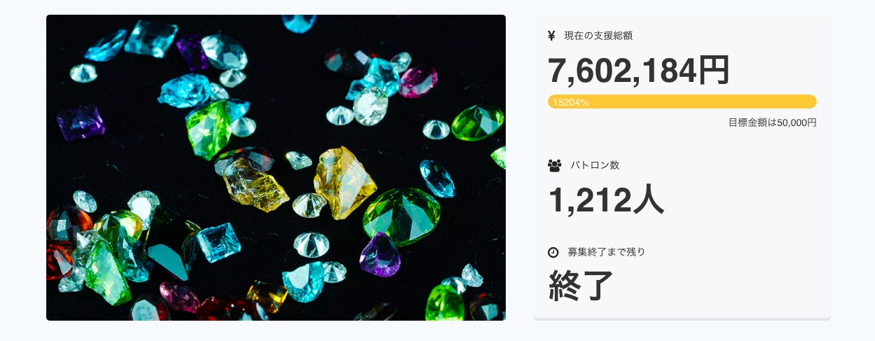 2018年10月に実施した「処分されていた欠けた宝石の存在をクラウドファンディングを通じて知ってもらいたい!」は、予想していた支援金額を大きく上回ることができました。