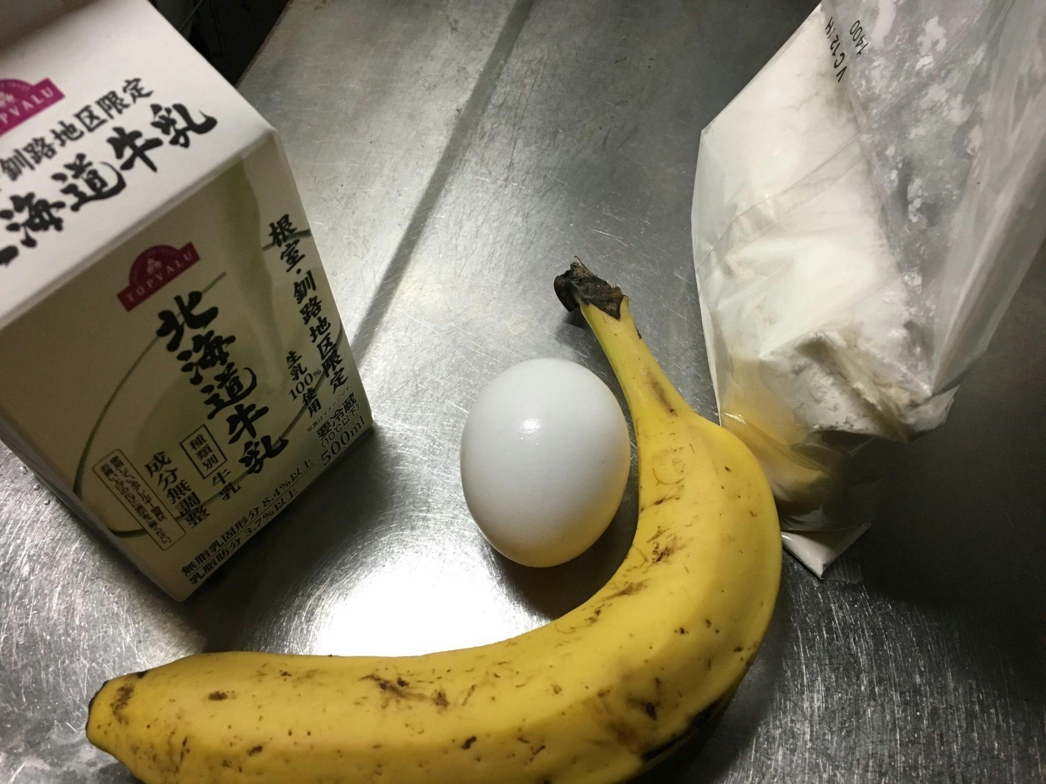 バナナを加えました。シンプルなホットケーキを作りたい私としては本末転倒です。
