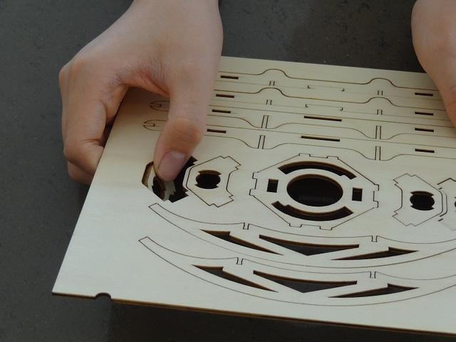 くり抜いた木型を組み合わせるだけで完了します。