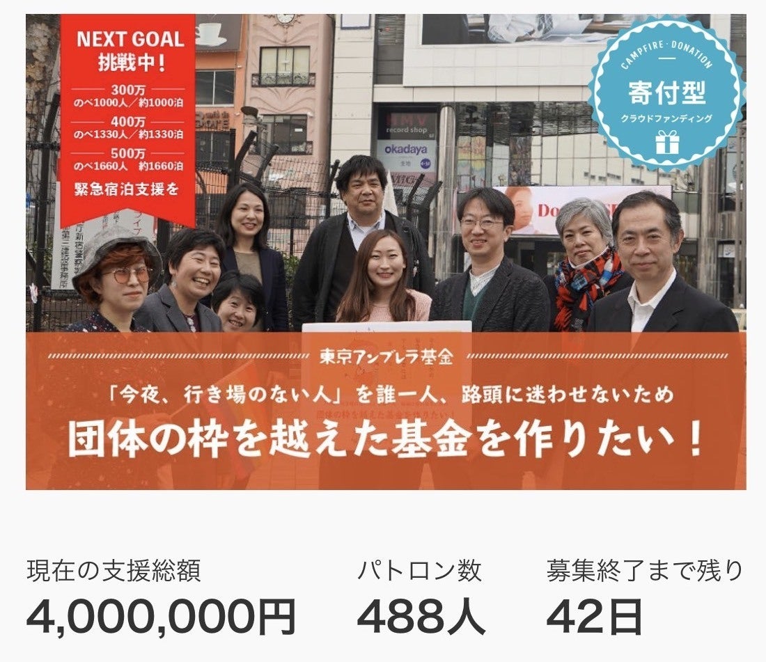 プロジェクトを応援いただきありがとうございます!東京アンブレラ基金事務局です。おかげさまで現時点で562人の方に御支援いただき、のべ約1590人(約1590泊)分の緊急宿泊支援が可能となりました!ありがとうございます!「東京アンブレラ基金」設立に、香山リカさん(精神科医、立教大学現代心理学部教授)より応援メッセージをいただきました!●香山リカさんからの応援メッセージ= = =「今日、家を出たい。」ずいぶん前に親からの暴力に苦しむ若者のメンタル相談に乗っていたとき、こう切り出されたことがありました。「行くあてはあるの?」と尋ねると、「ない」という答えが。でも、その若者は自分の命を守るには、もはや一日の猶予もないと考えたのです。私としては、いくつかの支援機関の連絡先を教え「相談を」と言うしかなく、無事に家を出られたのか、その後、確認することができなかったのです。そんなときまずホテルなどに身を落ち着け、そこからしっかりと新しい生活への体制づくりができたら。この基金は「今すぐの助けを」と求める人たちの命を守り、次のステップへの心強い足がかりになることでしょう。東京アンブレラ基金を全面的に支持します。